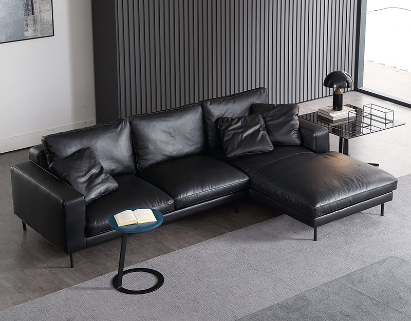 #18928P Topkvalitet Direkte Fabrikspris Sort Læder Sektionssofa af Billige Stuemøbler