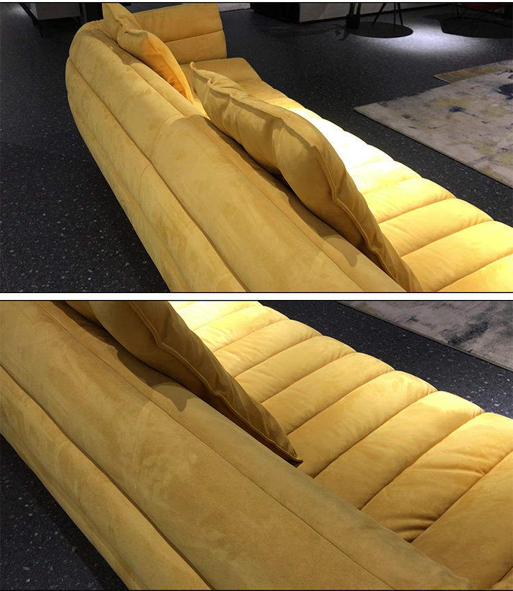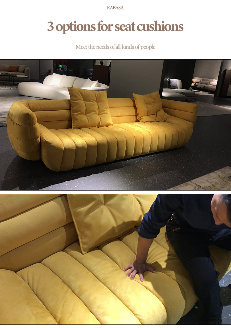 3 istuttava nubukki tummankeltainen mokkanahka hirven kangas uusi banaanin muotoinen tyylikäs design höyhen lounge sohva. Tämän sohvan on valmistanut Foshan Kabasa sohvahuonekalut. Saatavana eri väreissä, päällysmateriaalina ja useissa eri kokoissa, jotka sopivat eri tiloihin. Kabasa tarjoaa OEM- ja OEM-palveluita jakelijalle ja maahantuojalle tehdashinnalla.