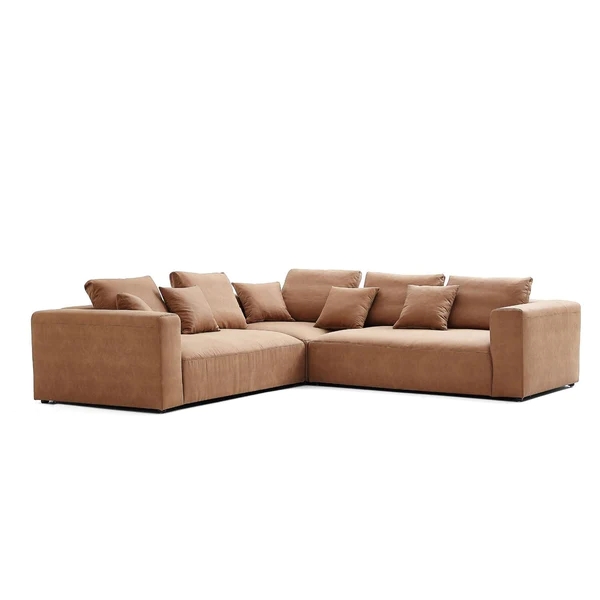 Tämä L-muotoinen sohvaistuin voidaan valmistaa tiheästä täyssienestä tai kohtalaisen pehmeästä lateksista tai pehmeämmästä untuvahöyhenestä.