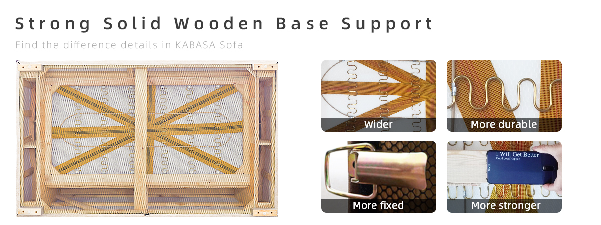 Le fabricant chinois de canapé Foshan Kabasa se concentre sur plus de détails pour le canapé à l'intérieur. Notre canapé design aux lignes épurées est fabriqué avec une structure en bois séché au four. Le mélèze solide importé de Russie soutient le rembourrage haute densité pour un confort durable. Le poids de 5 à 10 adultes n'est pas un problème à supporter. Vous trouverez également la différence entre le kabasa et les autres canapés normaux sur le marché.