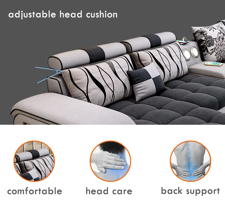 # K01 chine Foshan canapé fabriqué en usine multi-fonction lin tissu gris foncé coin canapé ensemble bas prix