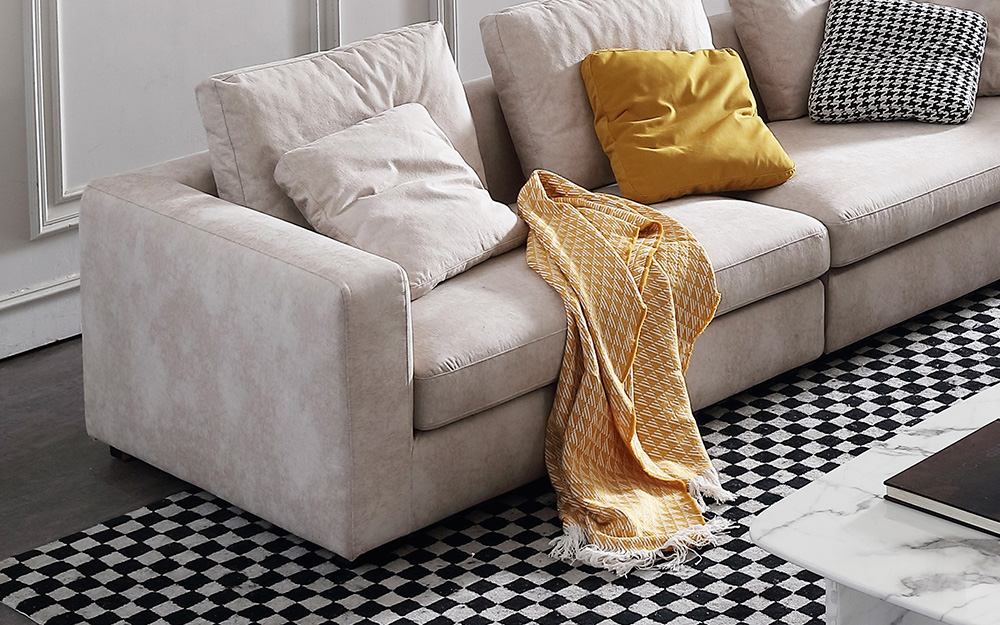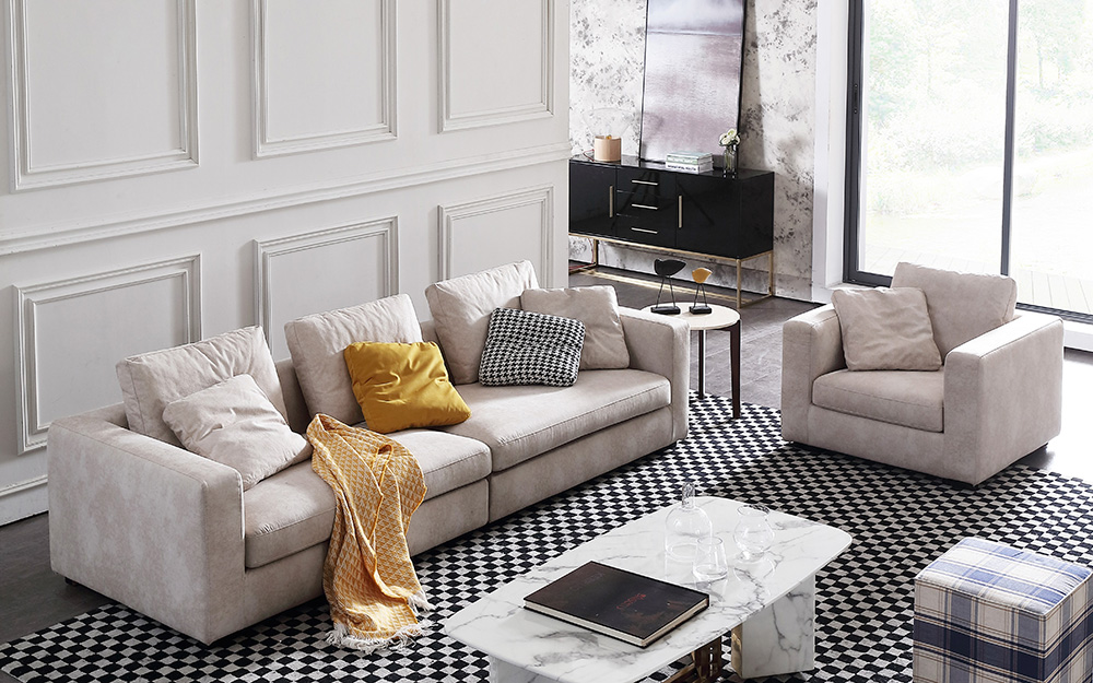 Pilihan sofa desainer kain yang indah untuk setiap gaya ruang tamu. Mudah dibersihkan, sejuk saat disentuh. Sofa ruang tamu 4 seater dengan bahan kain yang lembut juga bisa di sesuaikan dengan warna lain atau bahan lain sesuai keinginan. MOQ adalah 5 set, memulai bisnis Anda dengan hanya 5 kursi sofa desainer sekarang.