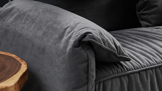 Questo divano in tessuto grigio è realizzato con materiale di alta qualità: tessuto di velluto.