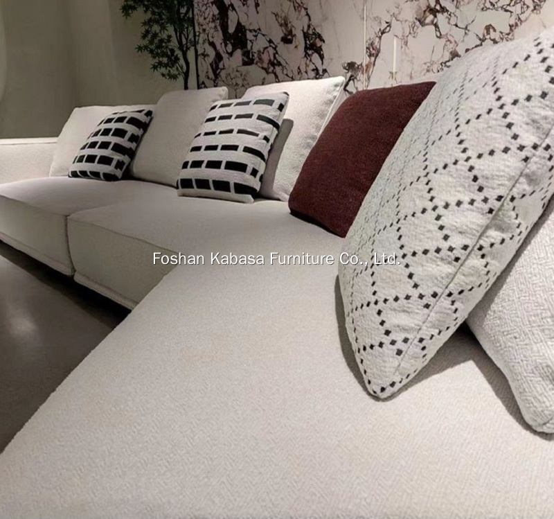 中国佛山市カバサソファ工場 サプライヤーはソファに最も快適な背もたれクッションを作ることに専念しています。背クッションの中材にはダウンフェザーミックスシルク真綿を使用しています。柔らかな天然ダウンフェザーミックスシルク真綿の詰め物は型崩れを防ぎ、体をソフトにサポートします。 中綿の割合はダウンフェザー70%、シルク真綿30%でより柔らかく、ふわふわで快適です。柔軟なシルクフロスは、背中の後ろに置いても頭の下に置いても形状に戻り、さらなるサポートを提供します。