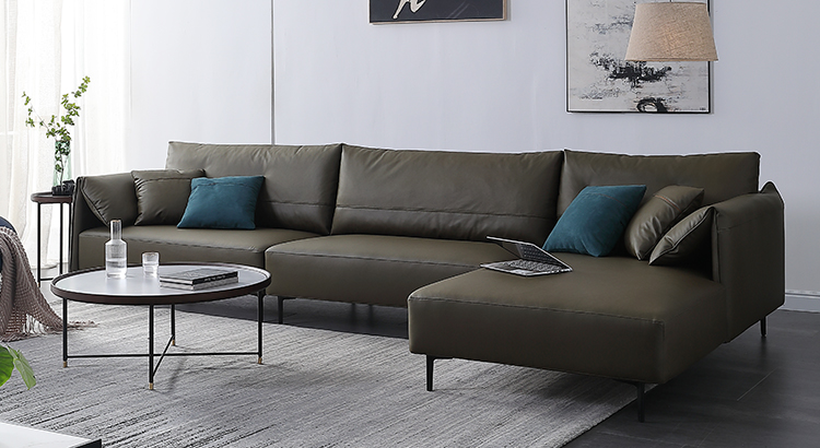 Sofa sudut ini boleh membentuk ruang komunikasi terbuka untuk komunikasi bersama. Sofa sudut biasanya menggunakan gabungan sofa berbentuk L dan sofa seorang, yang boleh menggunakan sepenuhnya ruang di ruang tamu dan menjadikan ruang lebih tangkas.