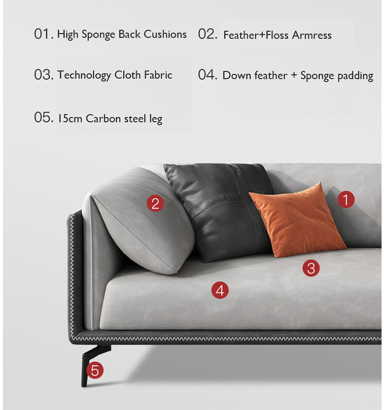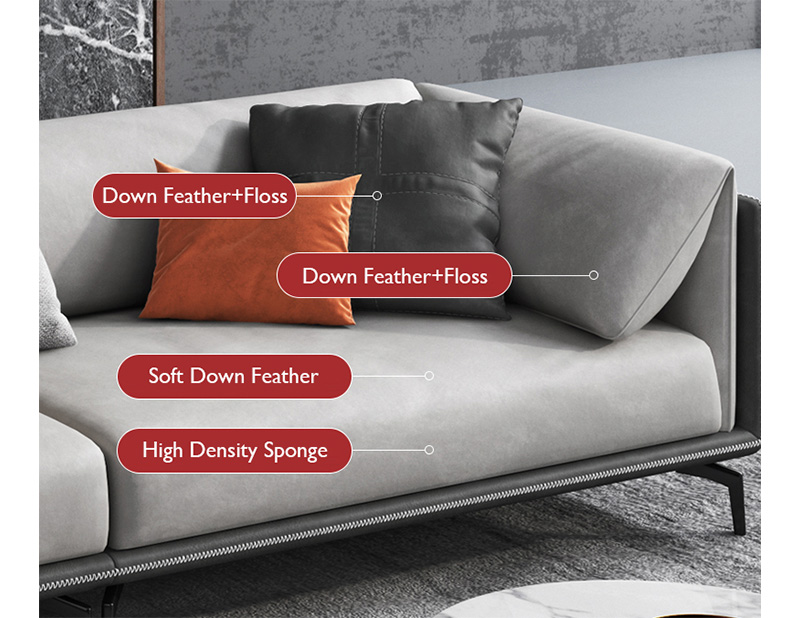 Pengilang sofa Foshan Kabasa China memfokuskan lebih banyak butiran untuk sofa di dalam. Sofa reka bentuk bergaris bersih kami direka dengan bingkai kayu kering tanur. Larch kuat yang diimport dari Rusia menyokong pelapik berketumpatan tinggi untuk keselesaan yang berkekalan. Berat 5-10 dewasa tiada masalah untuk ditanggung. Anda juga akan mendapati perbezaan antara kabasa dan sofa biasa lain di pasaran.
