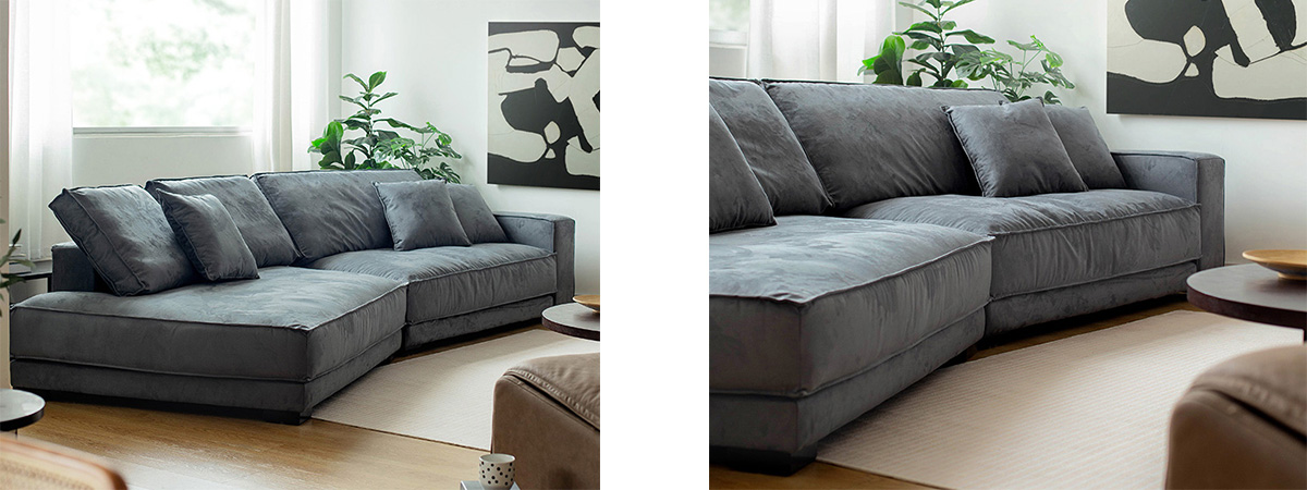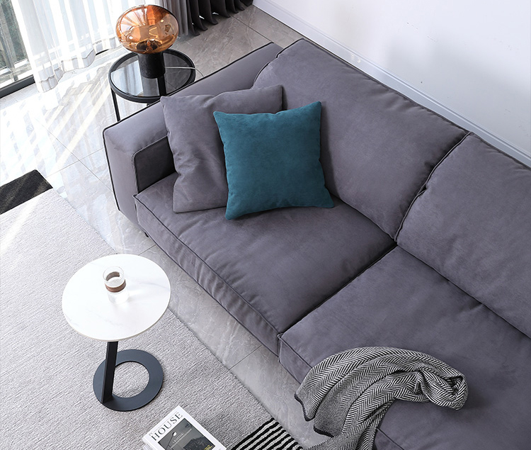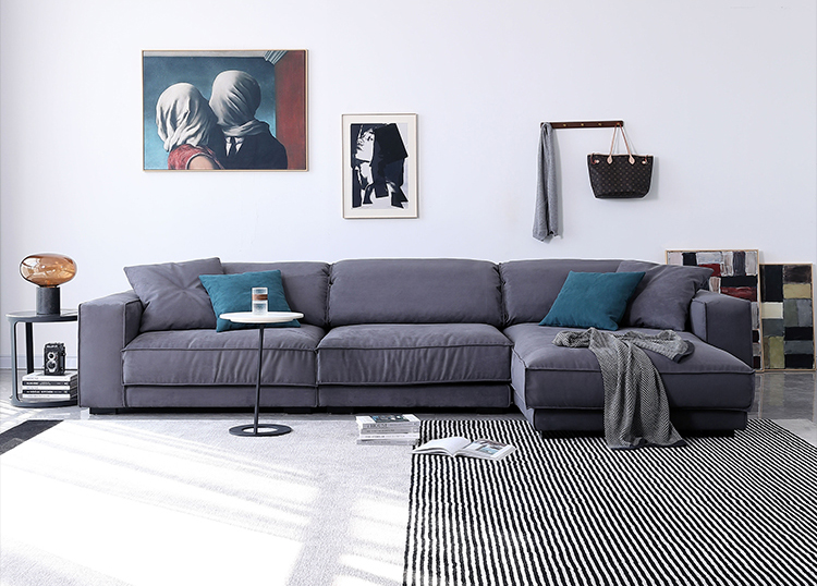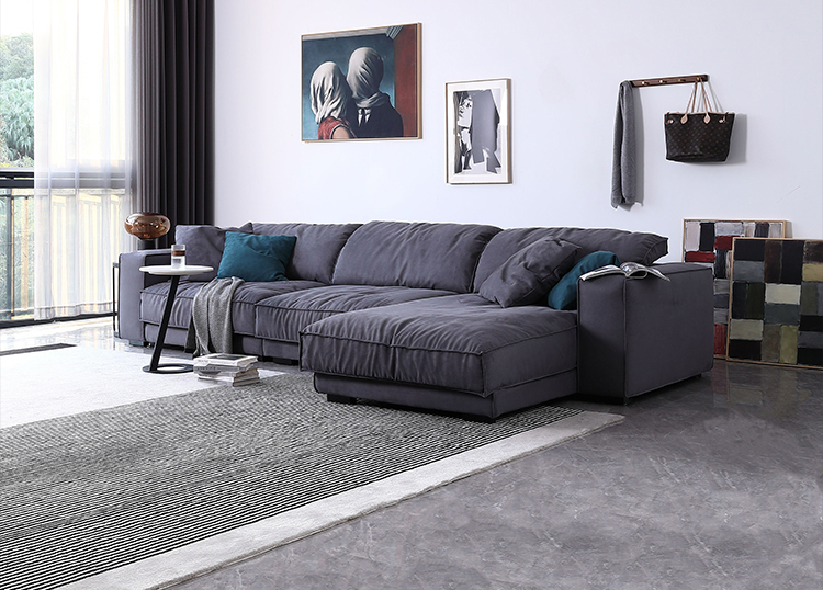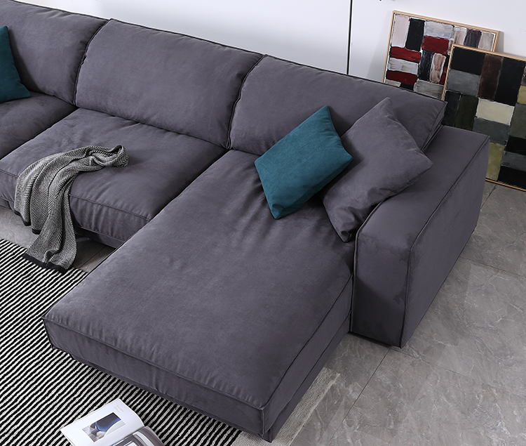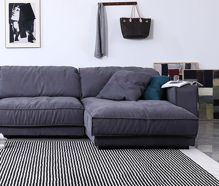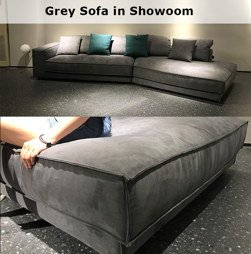 This L shape grey sofa is made by high quality deer suede effect fabric technology cloth upholstery.