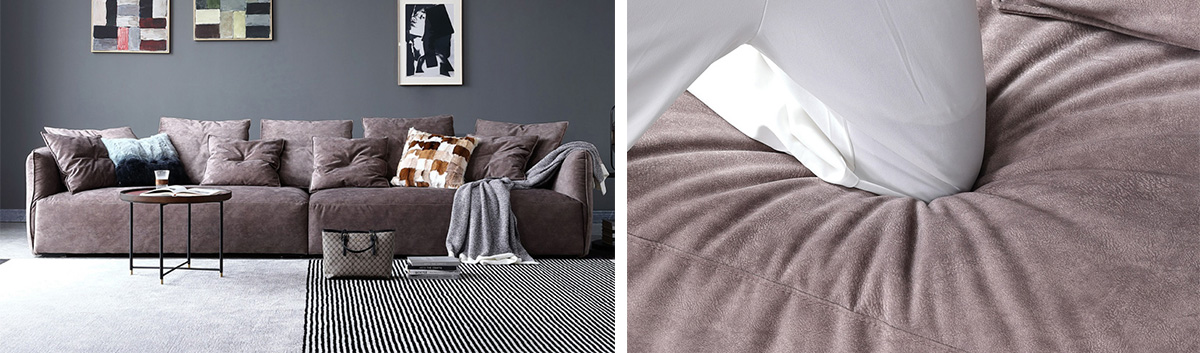 China Foshan Kabasa sofa company is devoted to make the most comfortable back cushion for the sofa. The back cushion infilled material is made of down feather mix silk floss. The soft natural down feather mix silk floss filling holds its shape and gives your body soft support. The ratio of filling is 70% of down feather and 30% of silk floss to make softer, fluffier and more comfortable. The flexible silk floss bounces back into shape whether you’ve had it behind your back or under your head for extra support.
