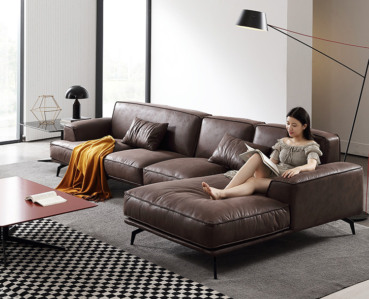 Brown l shape sofa is minimalist and unique, combing with contemporary modular design with a real designer edge, this brown corner couch is a stunning modular sofa perfect for relaxed living rooms or open plan spaces. This material of corner couch is technical cloth fabric, which is also called vegan leather. Vegan leather is a synthetic material that looks like leather, and feels like natural aged Italian leather.