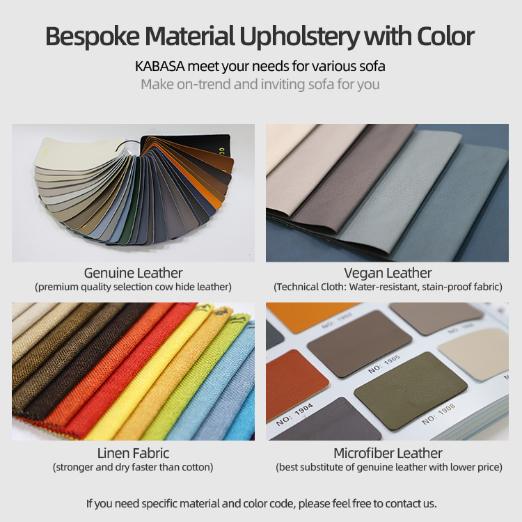 2. Available in full leather upholstery for all areas or use one kind of leather for seating, arm & back cushions and other areas made of premium faux leather, which will be more affordable.