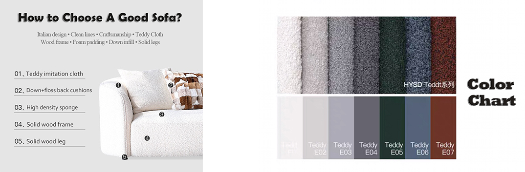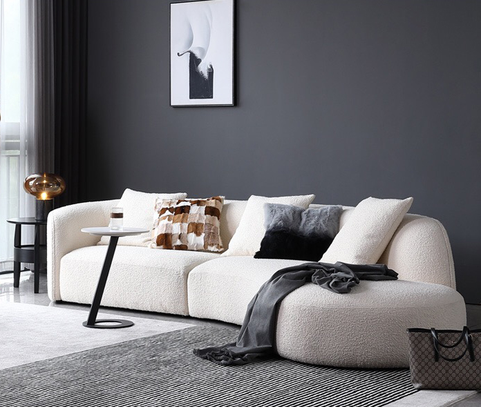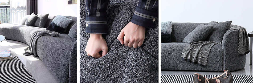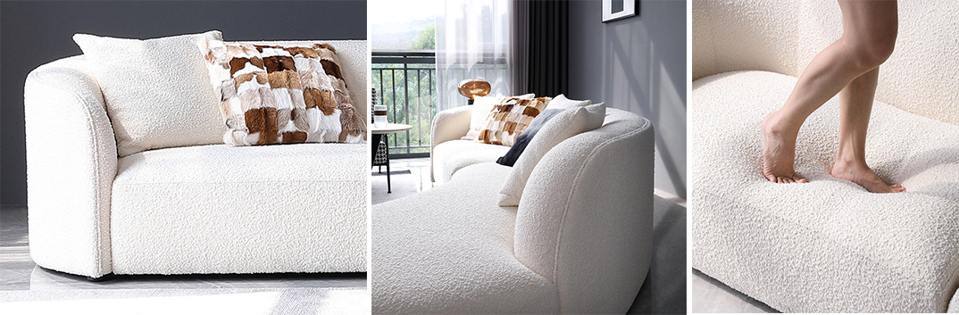 This shape sofa is made by high quality Teddy velvet upholstery.