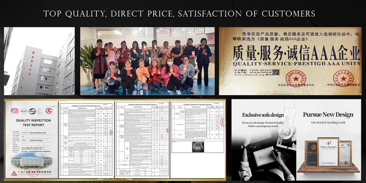“KABASA Sofa’’ was set up in 2007 with a vision to provide quality leather sofa, fabric sofa and world class designs ingrained in every single sofa. Located at the LongJiang area over a sprawling 15,000 sq.mts., ”KABASA Sofa” is one of the largest sofa producing company in Shunde. 'Every sofa is a masterpiece' is more than a brand promise. It is what the company strives for, the perfection in design and quality par excellence. The range of sofa includes 100% genuine leather sofa, premium fabric sofa in a variety of designs, size, and colors to suit every place. The designs are specially imported from Italy keeping in trend with the market demand for the international designs. The price that give you peace of mind. As a factory, the price is always direct for you. Though our price is preferential than other supplier, we promise that we don't cut corners and using fake leather or low quality leather and cheap material to make our sofa. Order our sofa, there is no surprise for the price but with super surprise for our top quality.