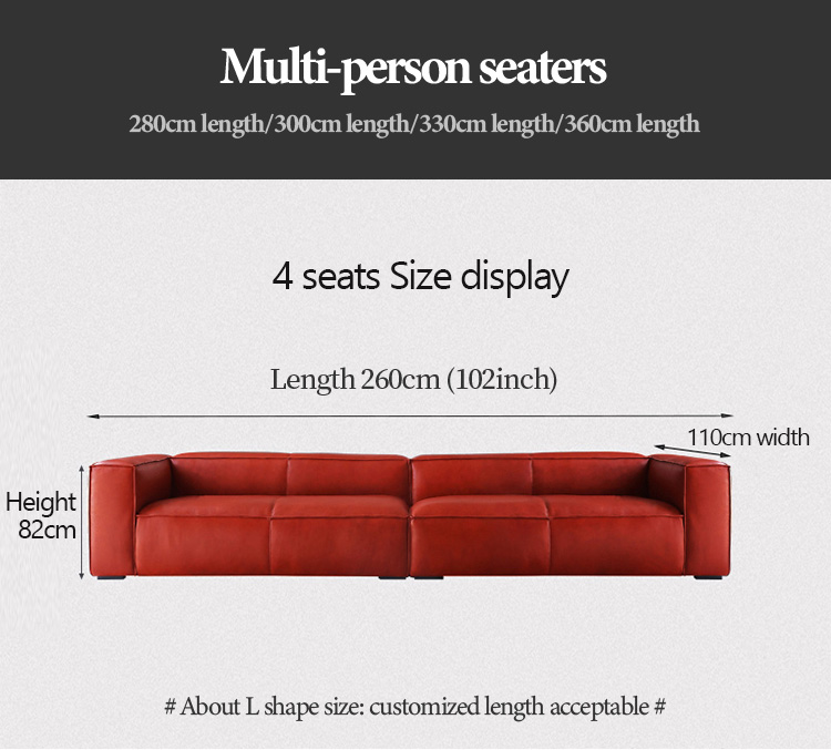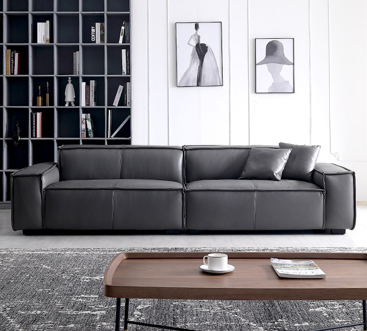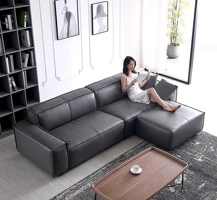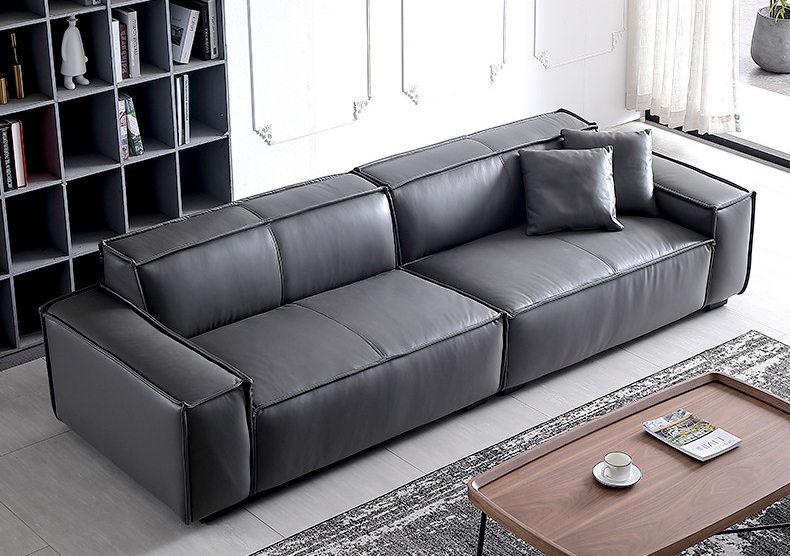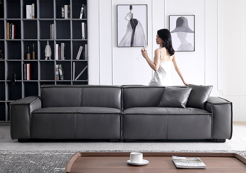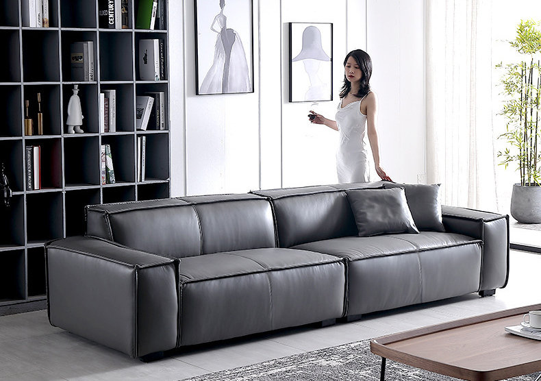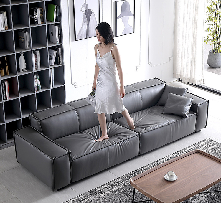 This light gray leather sofa seating can be made by high density full sponge or moderate soft latex, or more softer down feather.