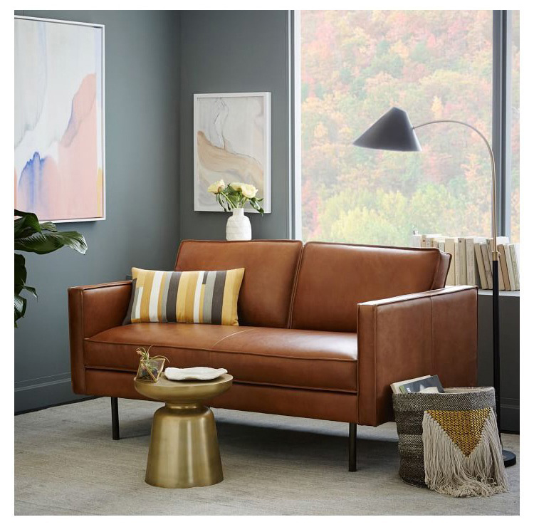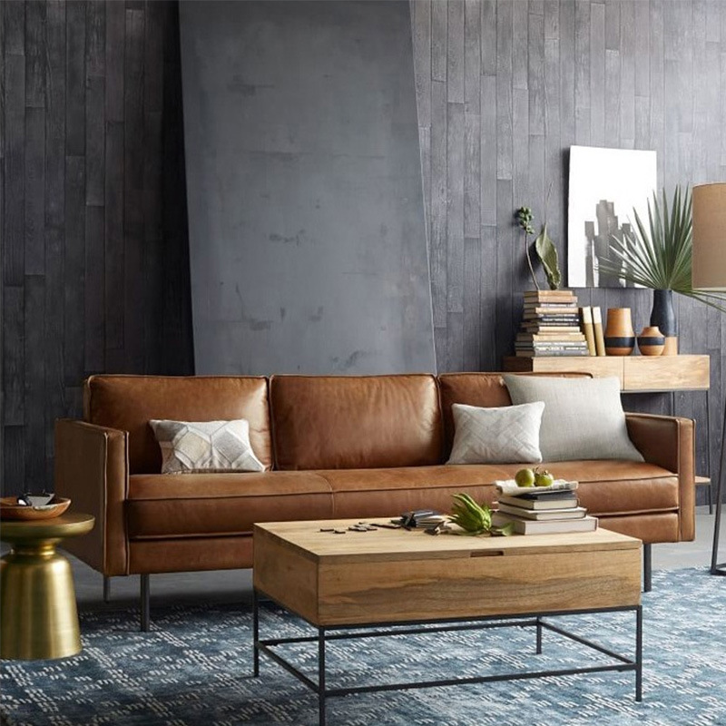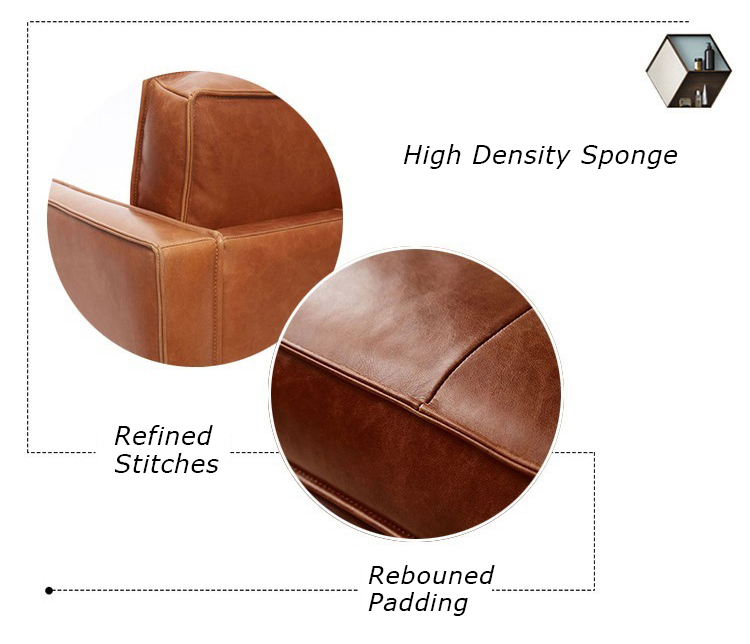 This tan leather sofa seating can be made by high density full sponge or moderate soft latex, or more softer down feather.