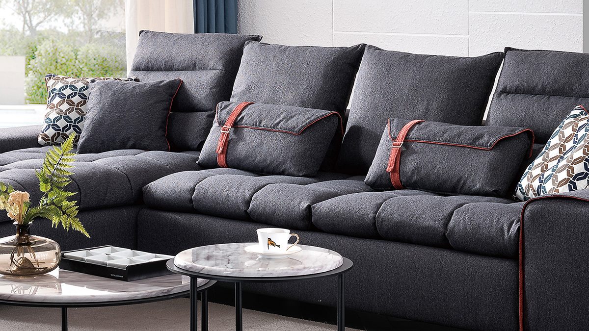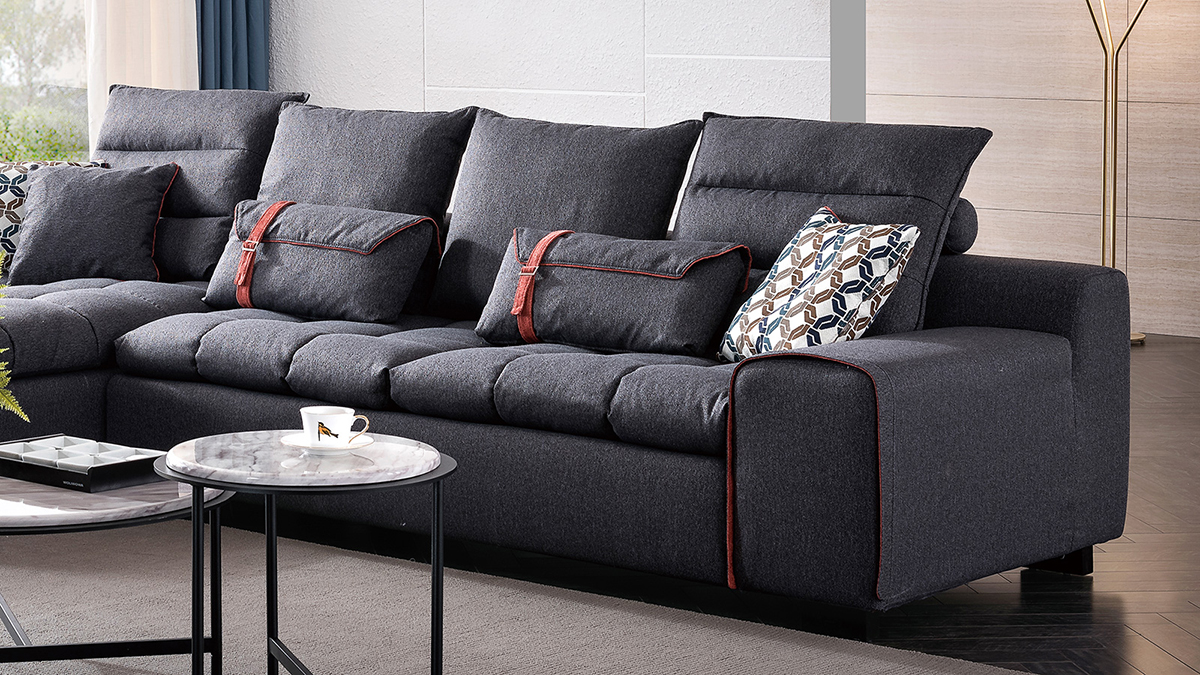 #817 China low price high quality dark grey fabric l couch living room sofa sets