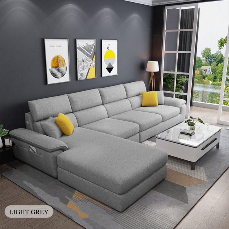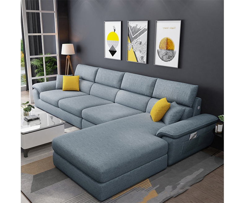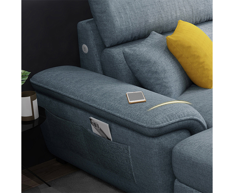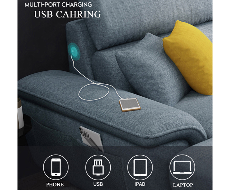 #8810 Modern design light blue fabric with wifi multi-function sectional couches for sale