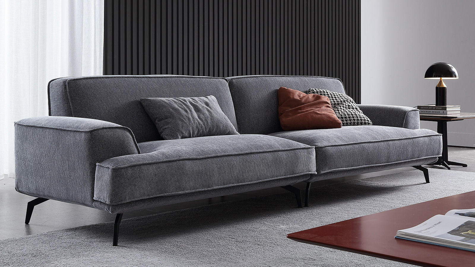 #S23 Foshan Kabasa furniture factory light grey linen couch 4 seaters sofa