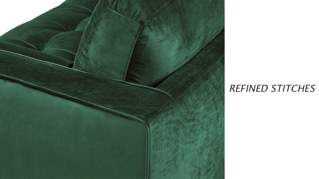 Careful Stitching of green velvet couch