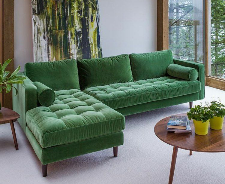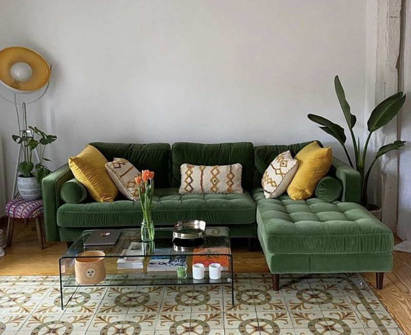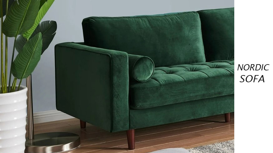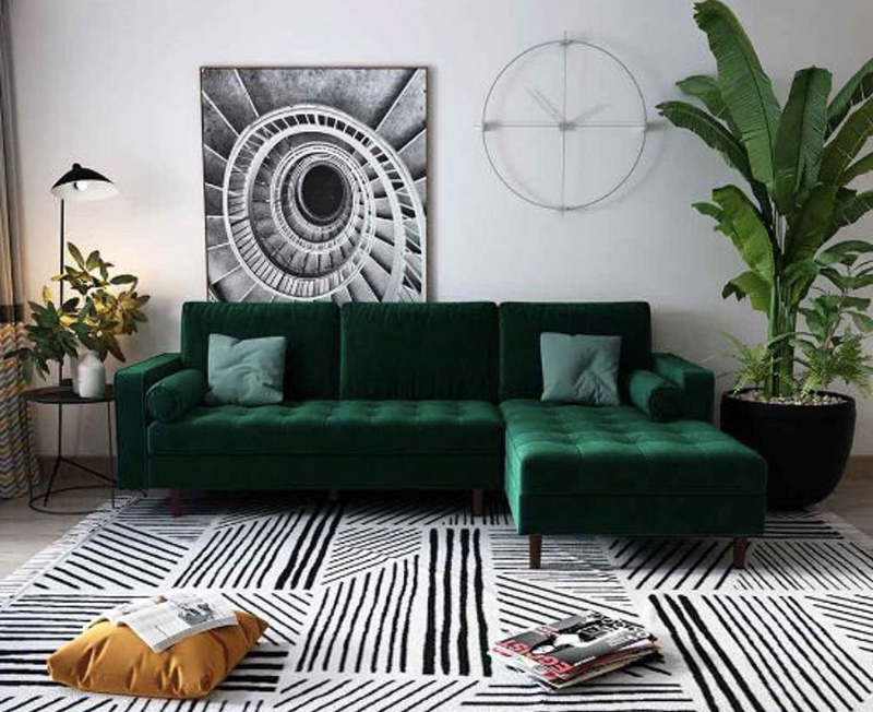 This green sofa living room is made by high quality material--soft velvet fabric.