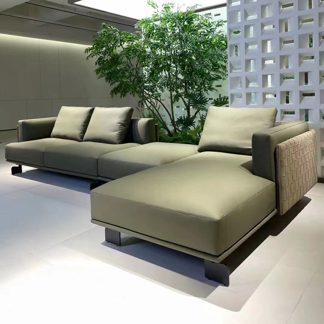 This L shape sofa seating can be made by high density full sponge or moderate soft latex, or more softer down feather.