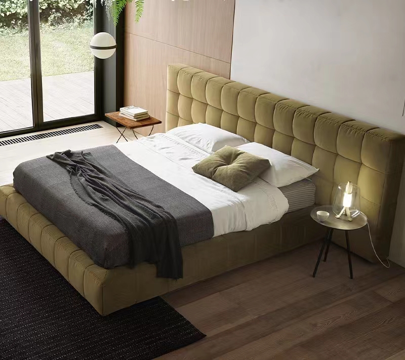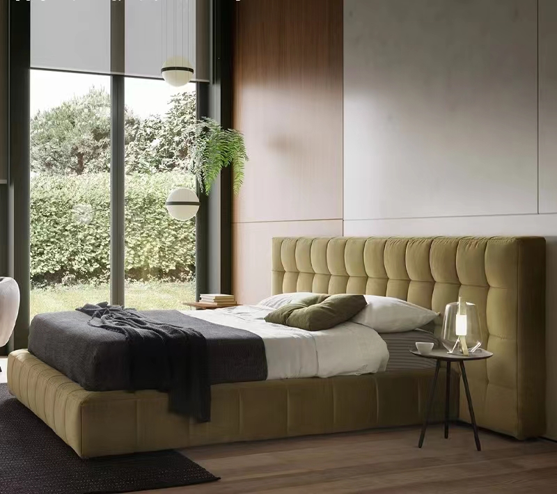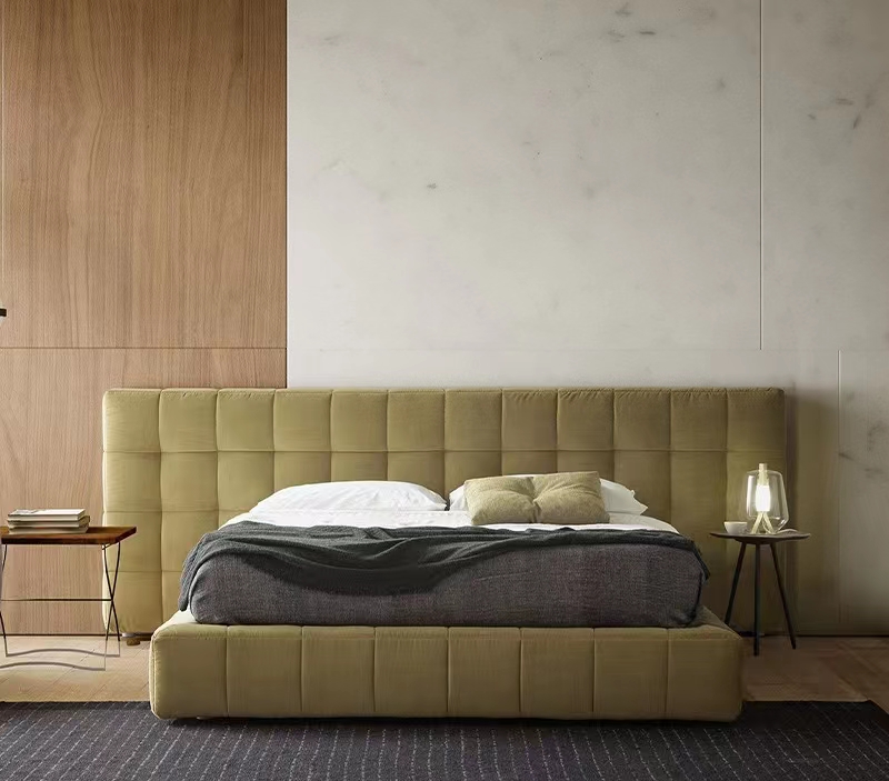 Villa Great Flat Layer Master Bedroom Wide Screen King Size Italian Minimalism Tofu Fabric Art 1.8M Bed