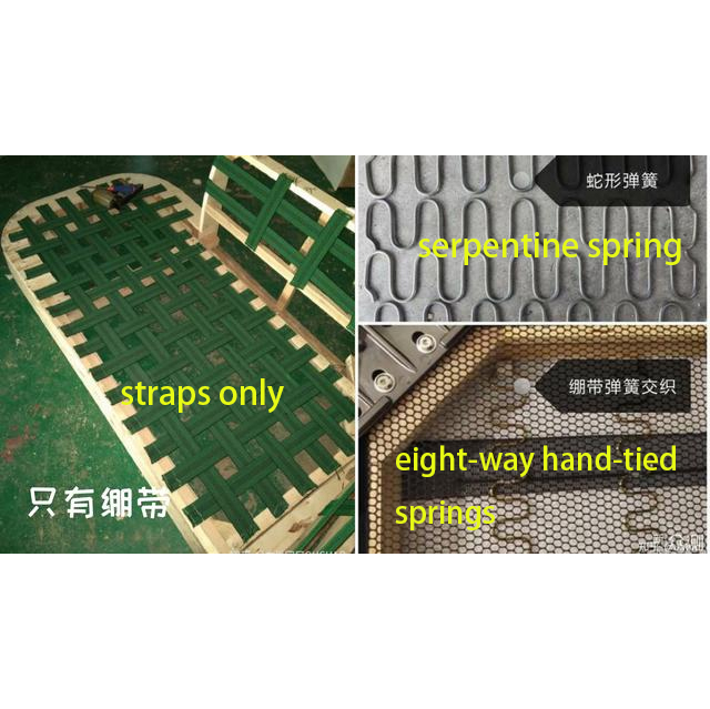 Springs are generally made of serpentine springs (also called S-shaped springs) to increase the bearing capacity of the sofa, and then fixed with special spring clips to reduce noise. The spring installation must be firm, and there should be no change when pressing hard. Quantity depends on specific needs.