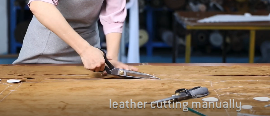 3 Coat cutting and sewing The sofa you see, each side is a board, which is called a leather board. Place the leather board on the cowhide to draw, and pay attention to avoid unqualified leather. Start cutting later. ▼