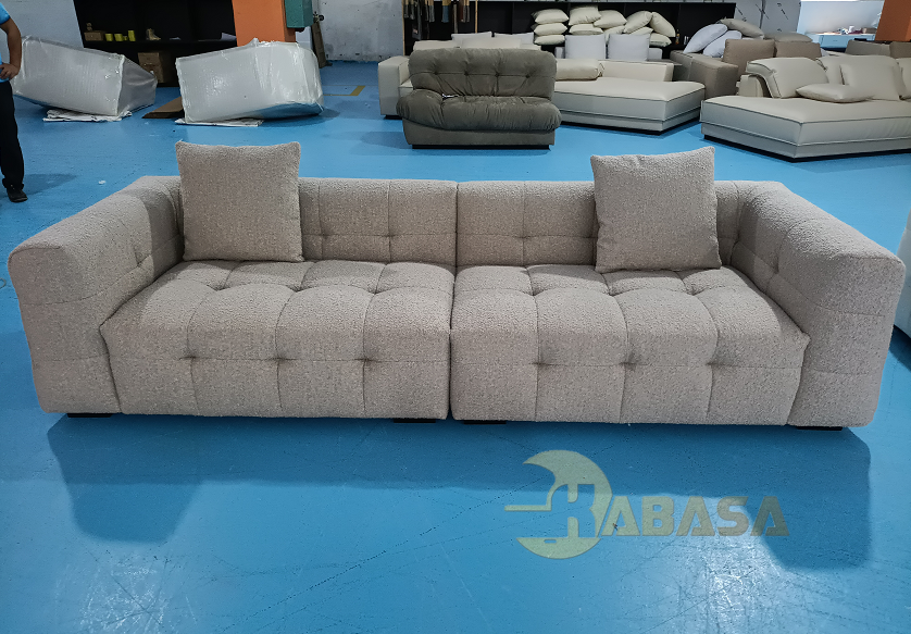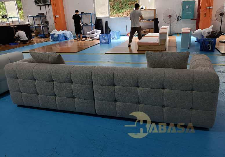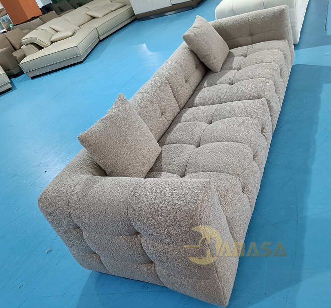 Besides selecting quality fabric material to make sofa, China Foshan Kabasa sofa factory supplier focuses more details for the sofa inside. Our clean-lined design sofa is crafted with a kiln-dried wood frame. The strong larch imported from Russia supports the high-density padding for lasting comfort. 5-10 adults weight is no problem to support. Also you would find the different between kabasa and other normal sofa in the market.