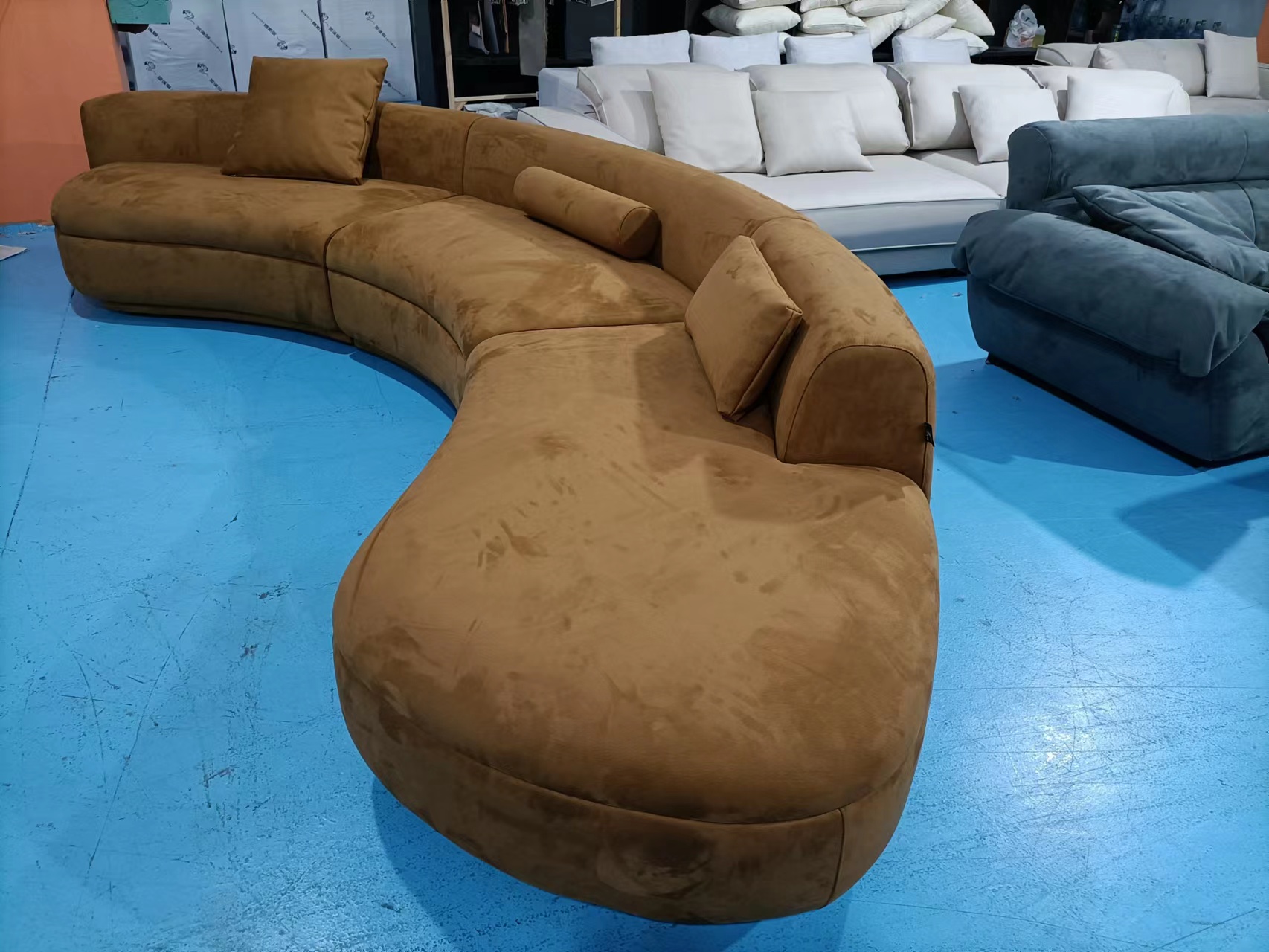 Brown Round curved sectional sofa Modern 7-Seat Modular Sofa Velvet Upholstered Modular Sofa with Pillows