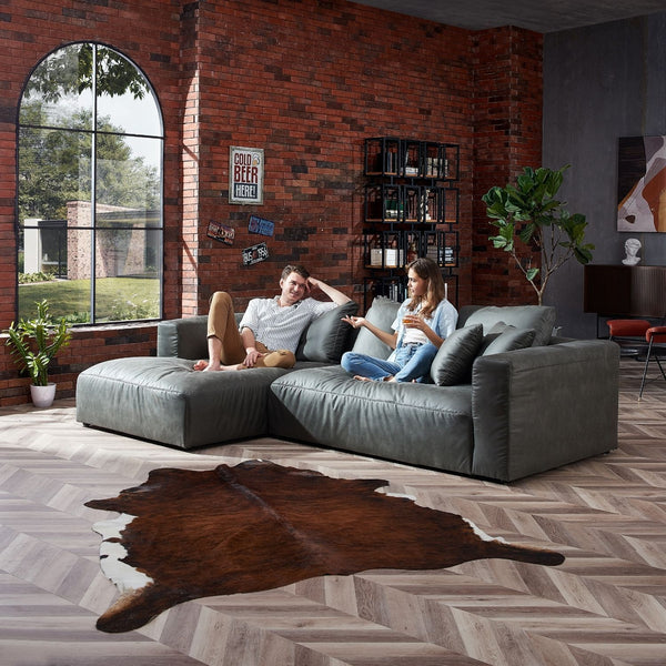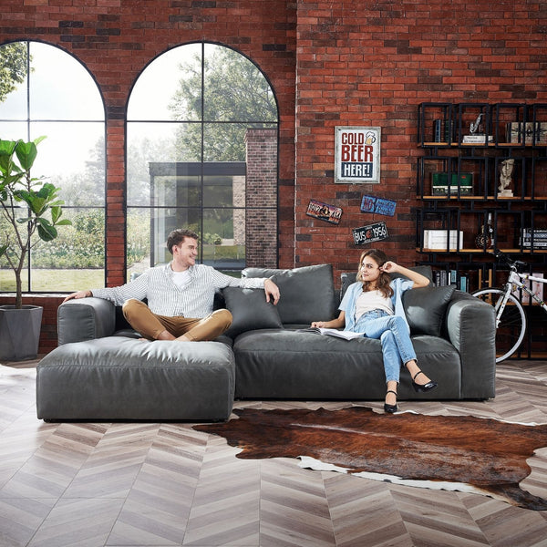 Quality Light grey leather sofa couch corner with chaise lounge Manufacturer | Kabasa