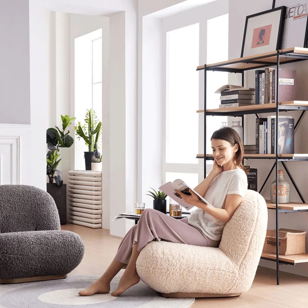 Ivory boucle sofa Interior design Swivel chair Boucle fabric chair leisure sofa chair in KABASA factory