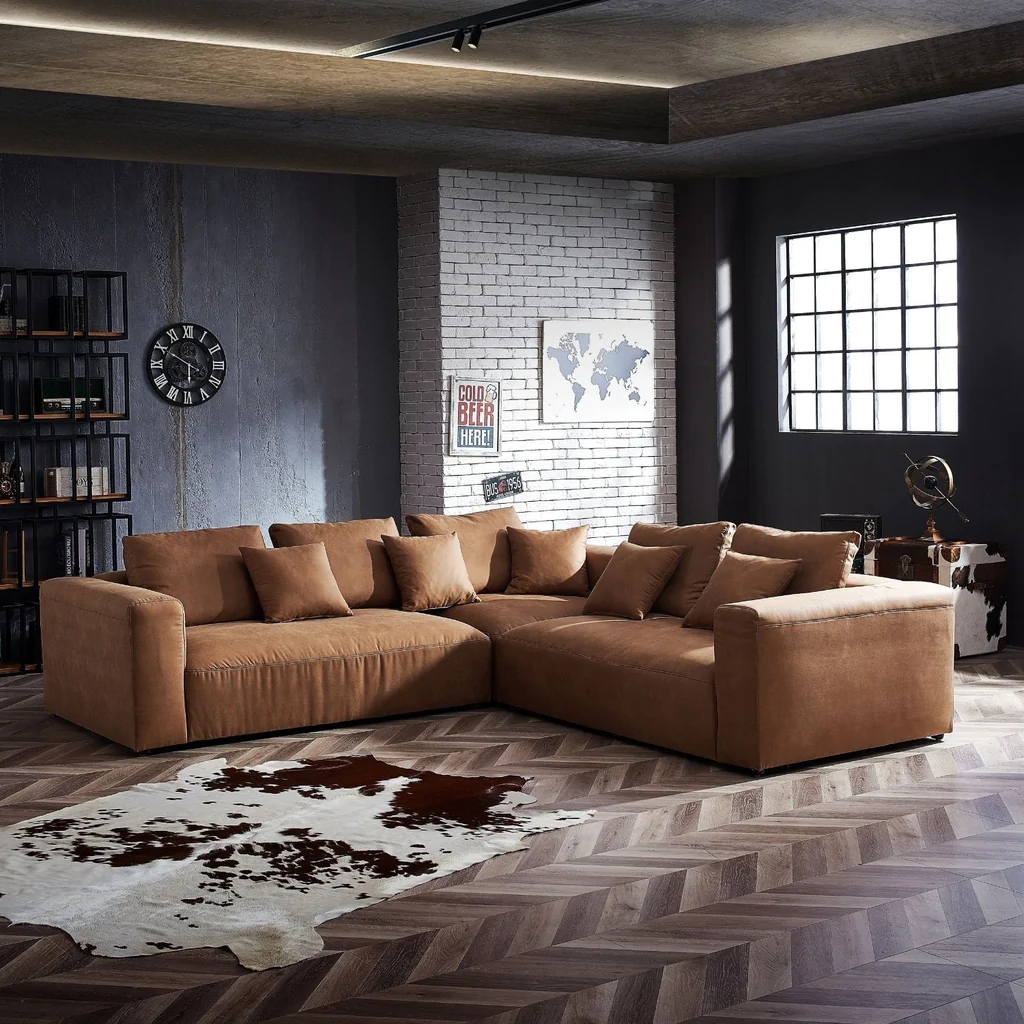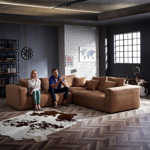 This L shape sofa seating can be made by high density full sponge or moderate soft latex, or more softer down feather.
