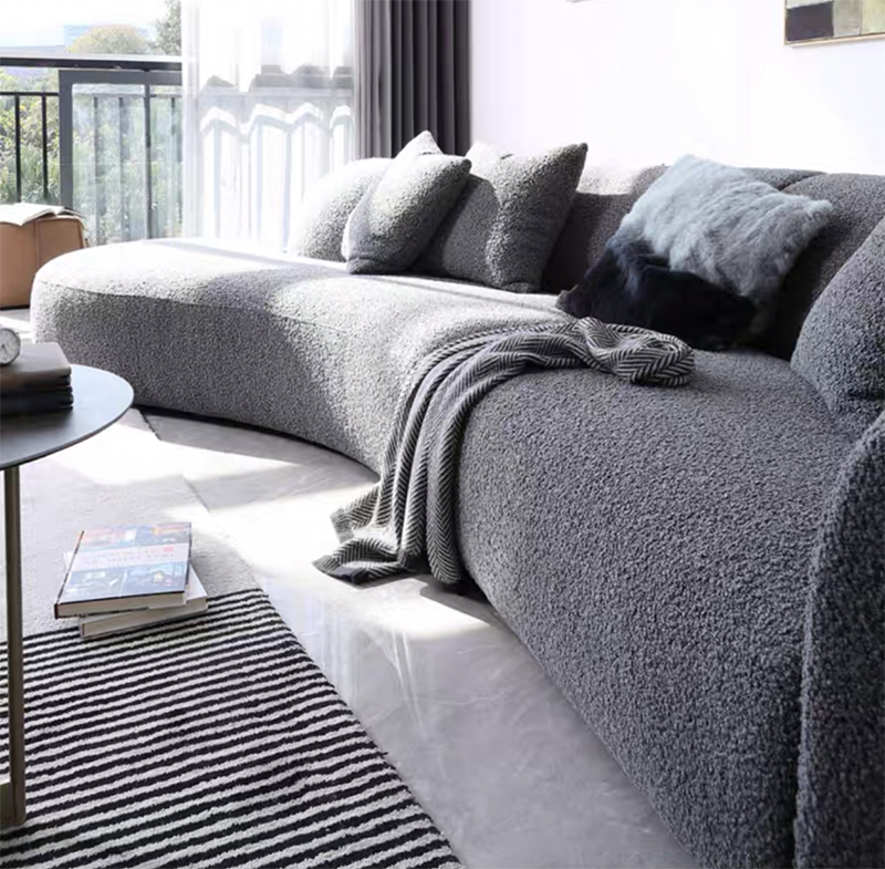 Since boucle fabric adds superior softness to sofa, and has a modern look and cozy texture that bring a sense of contemporary to most interior areas like living room, bedroom, hotel room, etc.