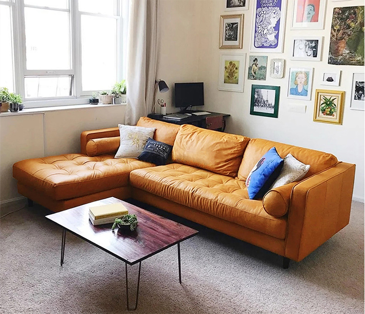 Ang brown corner leather couch na ito ay available bilang 4, 3 at 2 seater sofas at may katugmang footstool na available. Ang larawang nakikita mo ay hugis-l na chaise lounge na sectional na mga couch na gawa sa teknolohiyang leather na mukhang nagbibigay ng leather touch ngunit may kalahating presyo lamang kaysa sa tunay na katad.