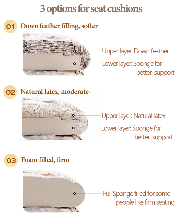 Nhà cung cấp ghế sofa Kabasa Phật Sơn Trung Quốc tập trung nhiều chi tiết hơn cho ghế sofa bên trong. Ghế sofa thiết kế lót nỉ sạch của chúng tôi được làm thủ công bằng khung gỗ đã qua lò sấy. Gỗ thông cứng nhập khẩu từ Nga hỗ trợ lớp đệm mật độ cao để tạo sự thoải mái lâu dài. 5-10 người lớn trọng lượng là không có vấn đề để hỗ trợ. Ngoài ra, bạn sẽ tìm thấy sự khác biệt giữa kabasa và ghế sofa bình thường khác trên thị trường.
